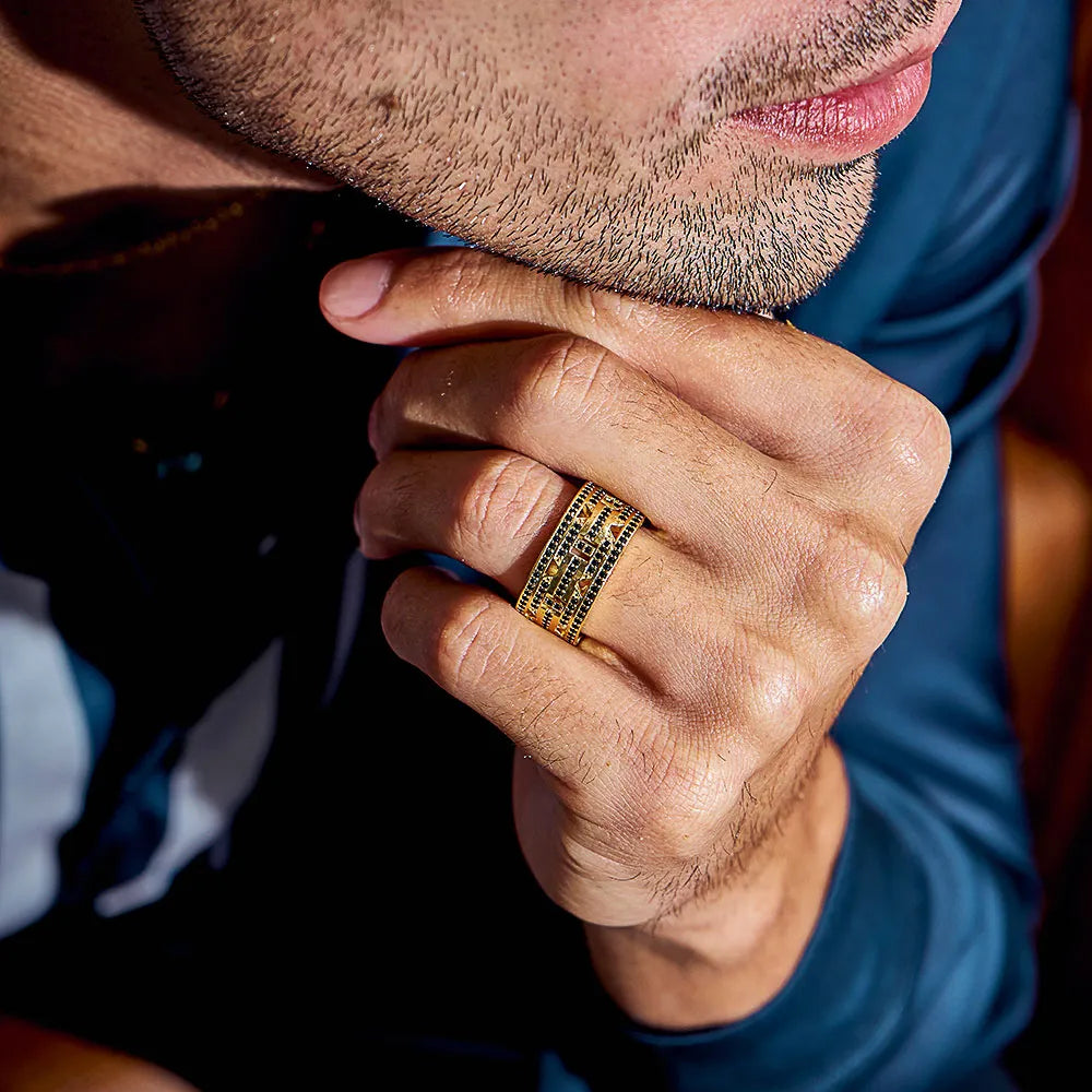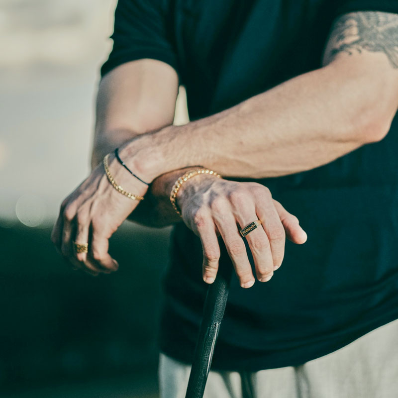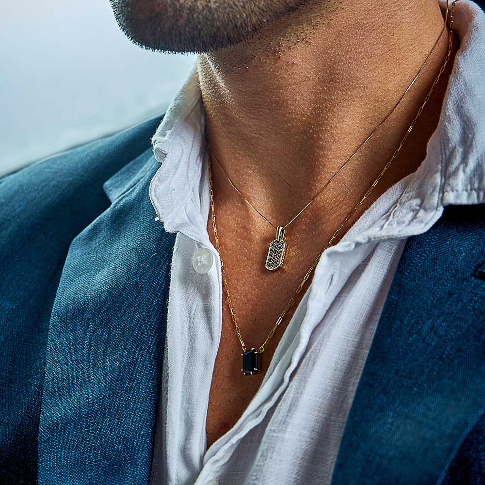 Pedras naturais brasileiras, selecionadas pela Cravegi, conferem autenticidade e sofisticação a cada joia masculina.