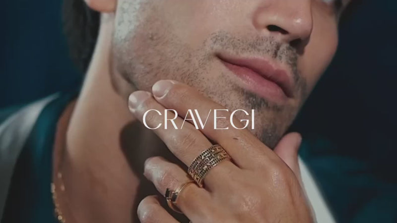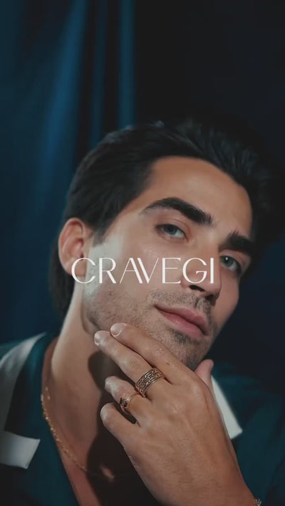 Pedras naturais brasileiras, selecionadas pela Cravegi, conferem autenticidade e sofisticação a cada joia masculina.